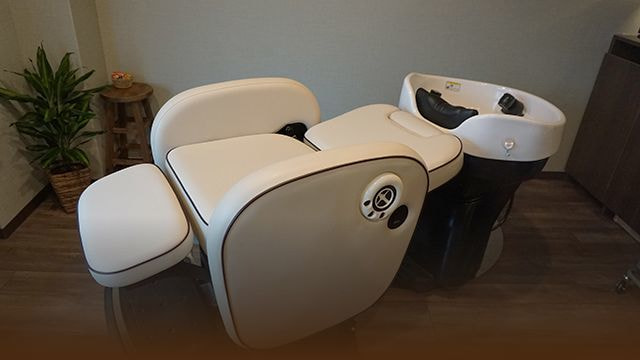 お客様の移動の負担を軽減するため、カットチェアーからそのままシャンプーすることができます。フルフラットで首にも負担がかからず、長時間でも快適なリラクゼーションをご提供いたします。
